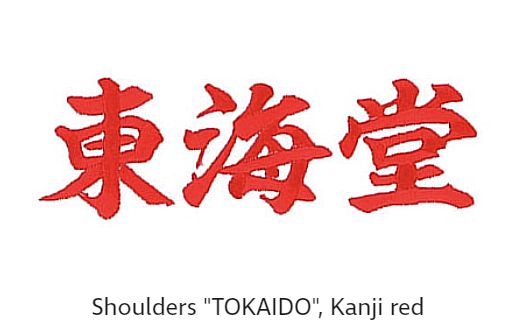 Logo atractiv Tokaido brodat pe pieptul și gâtul drept.